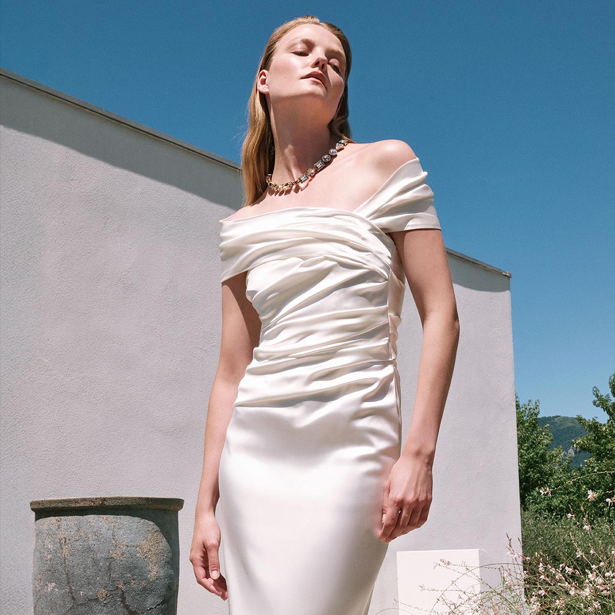 Mariant un esprit sophistiqué et un savoir-faire authentique, la collection Bridal Max Mara est l'allié parfait de tout conte de fées moderne. Saison après saison, des classiques contemporains s'épanouissent aux côtés de nouveaux modèles romantiques teintés d'une touche d'originalité, rehaussés de matières précieuses et de détails raffinés.