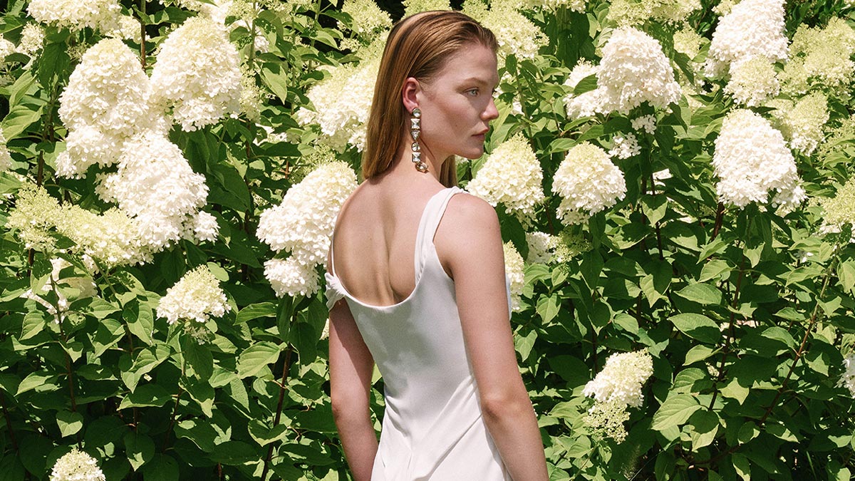 Des éléments en cuir blanc immaculé donnent lieu à une tenue romantique à l'esprit audacieux, tandis que voiles et brillants créent une aura glamour rétro. Une seule règle d'or : si la magie est là, n'hésitez pas.