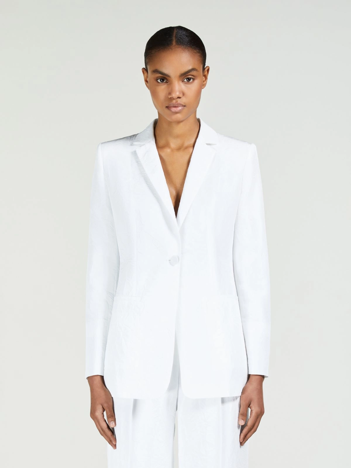 Blazer à simple boutonnage caractérisé par une texture à effet froissé moderne et élégante.